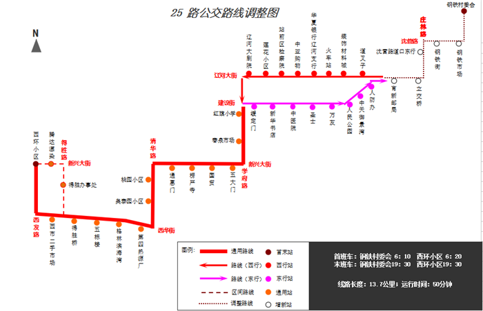 1.線路走向:“西環(huán)小區(qū)”—原線—遼河大街/建設(shè)街(東風(fēng)路)—“立交橋”—莊林路—沈營路—“鋼鐵村委會(huì)”。