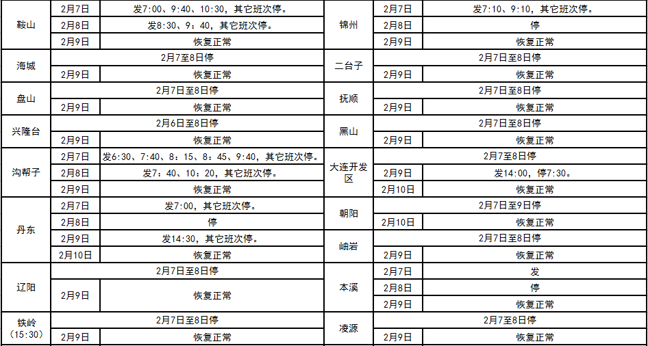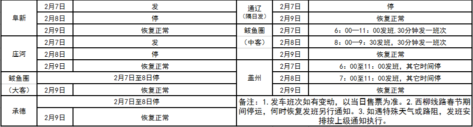 2016年春節(jié)假期班次發(fā)車情況